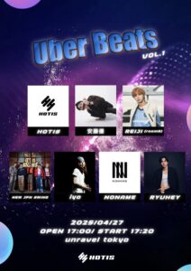 【イベント制作】 Uber Beats vol.2 投稿日 2025-05-05 更新日 2025-09-15 著者 hotis イベント制作・運営、アーティストブッキングを行いました。 Uber Beats vol.2 日付:2025/05/05(月)16:20 OPEN/16:45 START会場: 上野恩賜公園野外ステージ【出演アーティスト】HOTIS 46RECORDS FLS DBSing roomRNETWORK TOKYO GOODLUXXNEW JPN SWING iyo